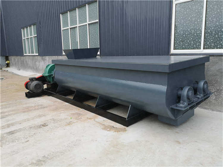 有機肥雙軸攪拌機攪拌區域內裝有旋轉反向的漿葉,漿葉成一定角度將物料沿軸向、徑向循環翻攪,使物料迅速混合均勻。主要用于預加水成球工藝流程中,當定量的生料粉由下料口流入攪拌糟中,經若干個具有一定壓力的水霧