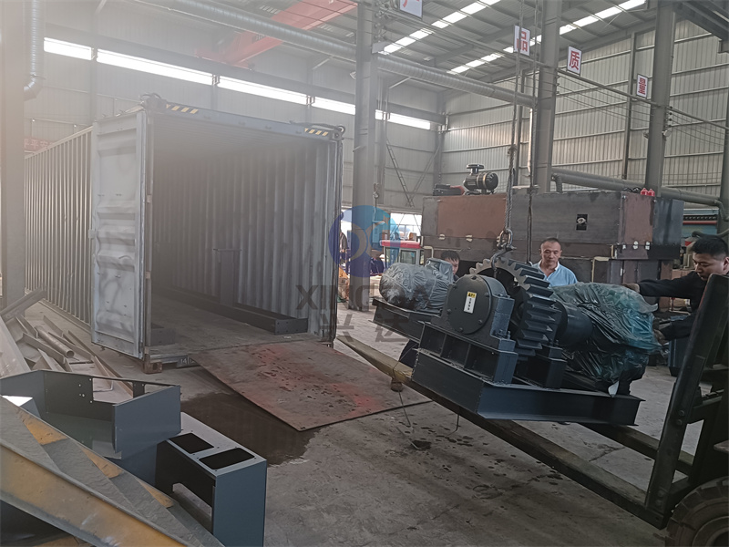 有機肥設備臥式攪拌機與燃燒機一起裝箱發往,準備出口