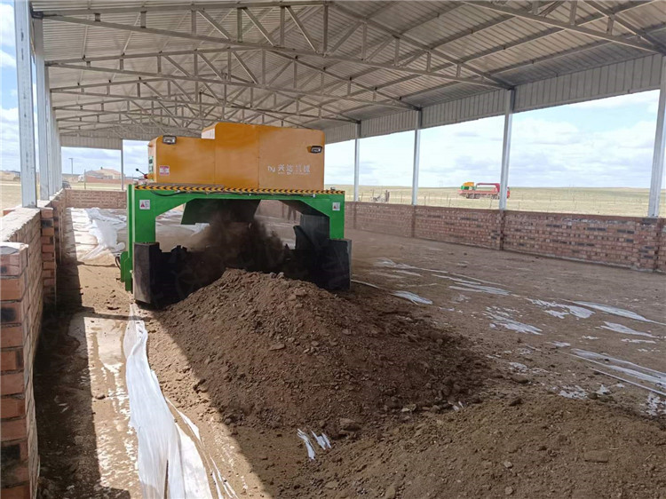 海南陵水縣客戶液壓槽式翻拋機,發酵雞糞,年產一萬噸粉劑雞糞有機肥生產線