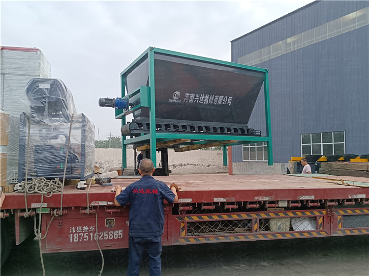 內蒙客戶定制有機肥鏟車料倉,雙機粉碎機發貨現場